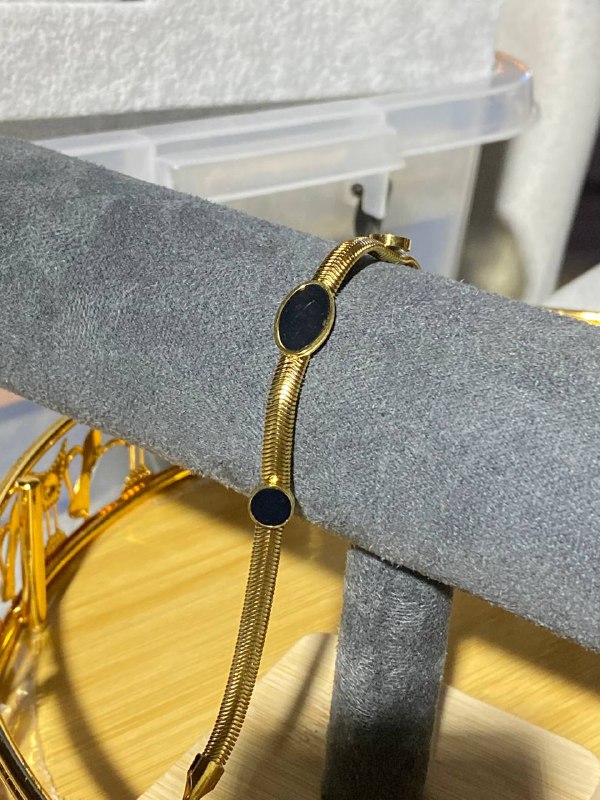 تصميم أنيق وبسيط يجمع بين الذهب والأحجار السوداء، وهو مثالي لإطلالة أنثوية لا مثيل لها. يمكن ارتداؤه في مناسبات مختلفة لتضيف لمسة من الفخامة. 🖤✨
